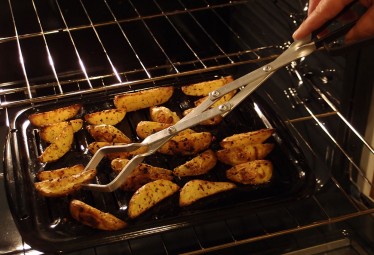 Handle food in the oven.